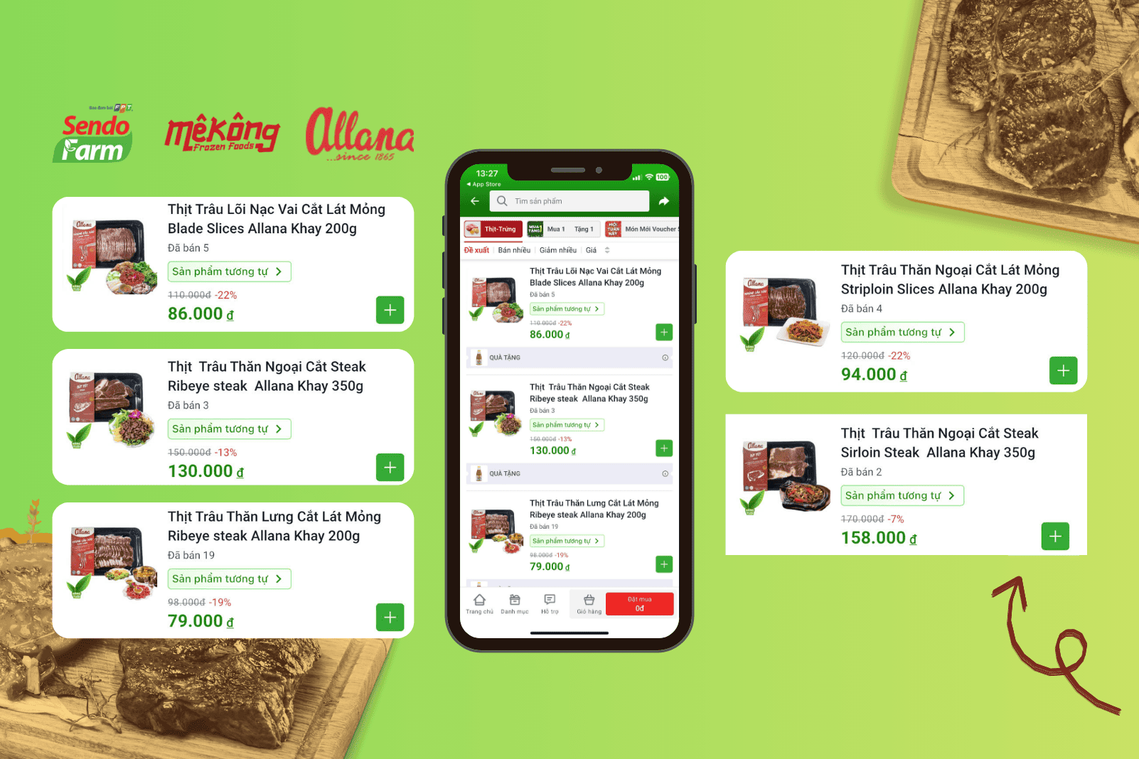 Chúng tôi mang đến giải pháp nguyên liệu đa dạng: thịt trâu, thịt bò, thịt gà, khoai tây,… Tất cả đều được tuyển chọn từ các thương hiệu danh tiếng như Allana, Sanderson Farms,...