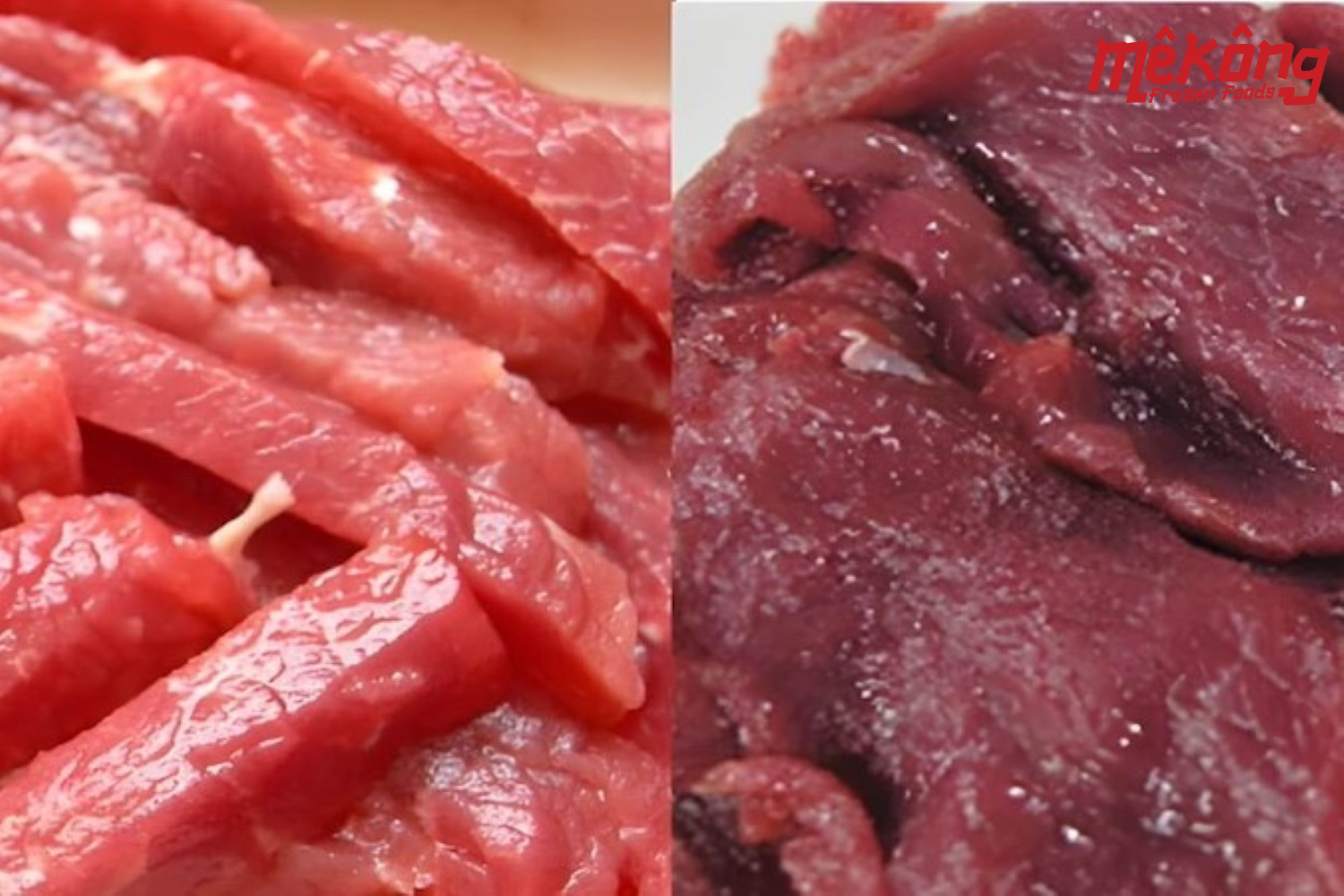 Thịt bò tươi thường có màu đỏ tươi, đôi khi là đỏ hồng, trông rất bắt mắt và hấp dẫn. Trong khi đó, thịt trâu lại có màu đỏ sẫm hơn, thậm chí hơi thâm và không có vẻ tươi tắn như thịt bò.